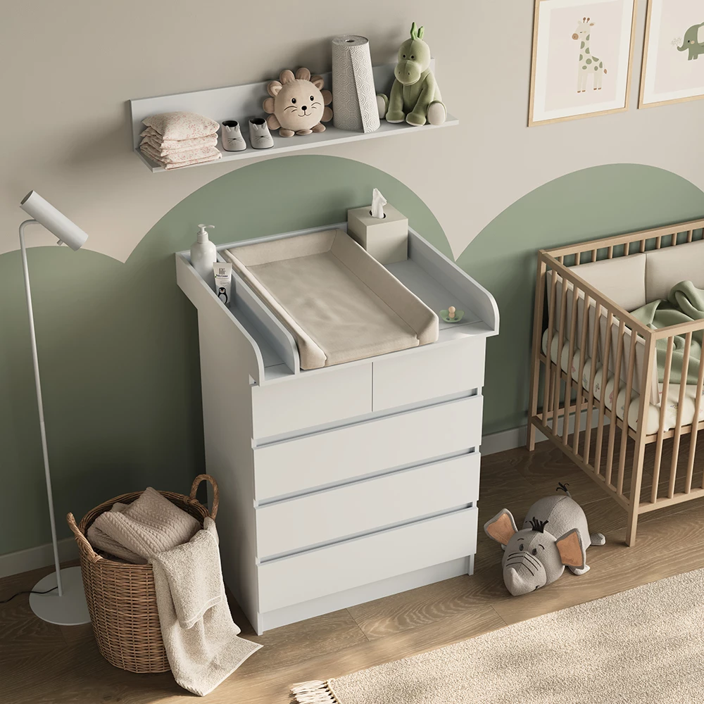 Emma's Verschoontafel is een gebruiksvriendelijke en stijlvolle toevoeging aan elke kinderkamer!Een handig Verschoningsblad voor de ladekast met 3 laden en extra open planken. Gebruik het als normale ladekast wanneer je kind groeit.AFMETINGEN: De baby-verschoontafel heeft de volgende afmetingen: Breedte: 80 cm, Hoogte: 87 cm, Diepte: 48 cm. Alle gedetailleerde maten staan op de foto's.MATERIAAL: De woonkamerkast bestaat uit onderhoudsvriendelijk spaanplaat van 16 mm, met een melaminehars coating.LEVERINGSOMVANG: Omkleedunit, Montagehandleiding, MontagemateriaalOp zoek naar een functionele en veelzijdige commode voor de babykamer? Dan is de Emma Commode wellicht iets voor jou! Deze commode beschikt over een handig verschoningsblad voor de ladekast, waardoor je jouw kleintje op een comfortabele hoogte kunt verschonen. Maar de Emma Commode is niet alleen geschikt voor de babykamer. Dankzij het strakke en tijdloze ontwerp, past deze commode ook prima in de woonkamer. Bovendien kun je deze commode ook na de babyfase blijven gebruiken als een normale ladekast. Met drie ruime laden en een extra open plank aan beide kanten, biedt de Emma Commode voldoende opbergruimte voor allerlei spullen. Kortom, de perfecte toevoeging voor jouw slaapkamer, kinderkamer of woonkamer!---Technische gegevens:Kleur:WitAfmetingen:80 x 87 x 48 cm (BxHxD)Materiaal:Spaanplaat, 16 mmOppervlak:Melaminehars coatingNettogewicht zonder verpakking:41.02 kg.Brutogewicht incl. verpakking:43 kg.---LEVERINGSOMVANG: Omkleedunit, Montagehandleiding, MontagemateriaalDe meubelserie "Emma" omvat badkamermeubels, kinderkamers en kaptafels in verschillende kleurcombinaties. Met veel mogelijkheden voor individuele eenheden en sets kunt u uw kamers geheel naar uw persoonlijke ideeën vormgeven en een aangename sfeer creëren.
