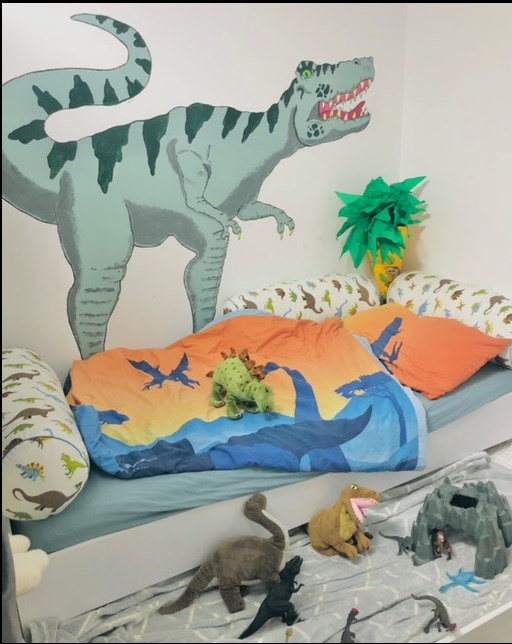 » Wir bzw. Unser 6 jähriger Sohn hat sich dieses Bett gewünscht , da ihm das Hochbett nicht mehr gefallen hat und er nun ein Schulkind ist. Das schöne an dem Bett ist , das es entweder mit der Schublade Stauraum bietet und in seinem Fall Platz zum übernachten für einen Freund gibt. Zudem benutzt er auch gerne die untere Seite wie auf dem Bild zu sehen, zum spielen. Er ist ein riesiger Dino Fan daher auch überall die Dinosaurier