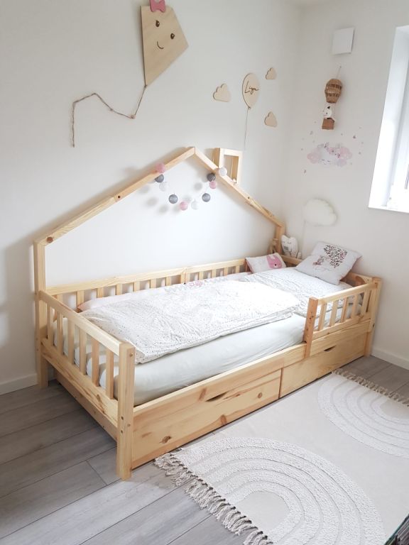 - Unser Holzbett für das Kinderzimmer ist eine gute Entscheidung, um eine warme und gemütliche Atmosphäre zu schaffen.