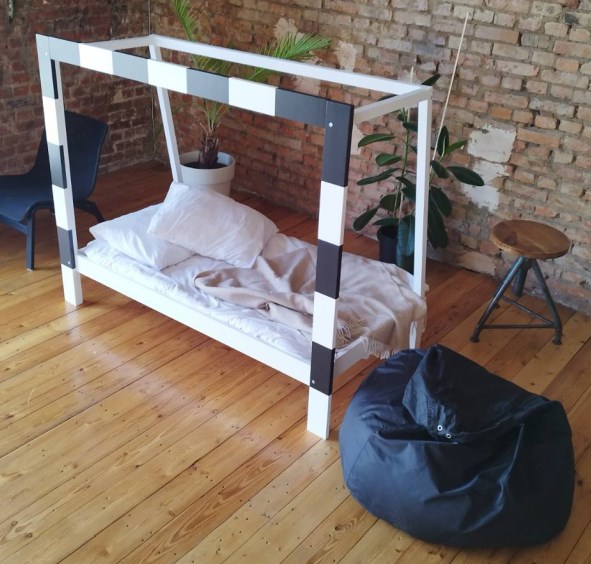 - Das Kinderzimmerbett ist kompatibel mit anderen Möbeln und macht das Zimmer interessanter. Es verfügt über eine Befestigung für die einfache Montage eines Netzes.