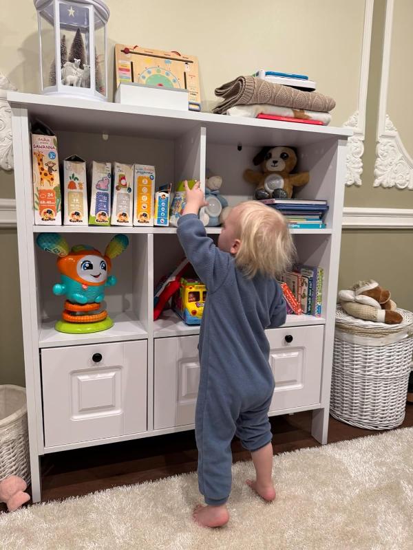 » Es bietet viel Stauraum für Bücher, Spielsachen und mehr. Die Höhe ist ideal, damit die Kinder selbst an ihre Sachen kommen. Der Aufbau war einfach, und das Regal macht einen stabilen Eindruck.