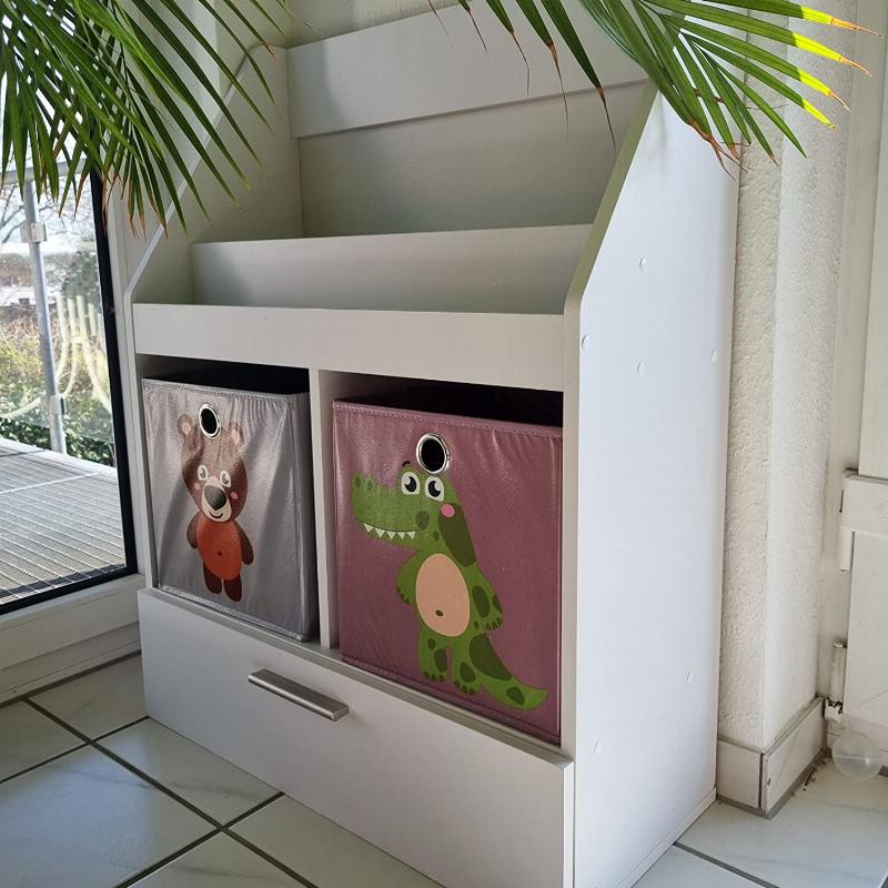 - LIEFERUMFANG: Kinderregal, 2x Faltbox, Montageanleitung, Montagematerial.