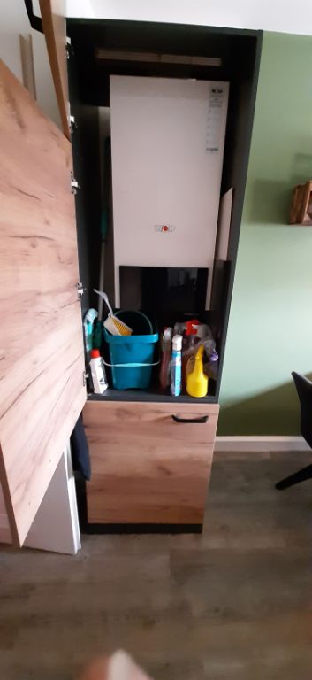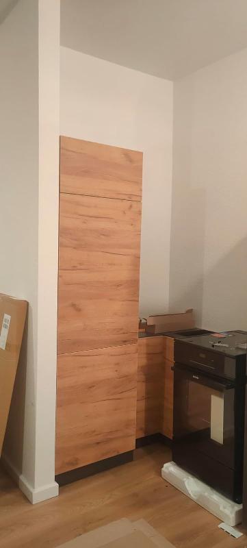 Irgendwann kam mir die Idee, einen Kücheneinbauschrank für Kühlschränke davor zu stellen.