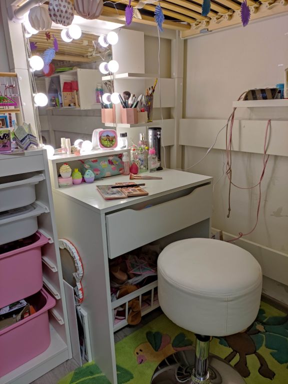 » Die Lieferung ging Reibungslos und schnell. Montage des Tisch war ziemlich schnell erledigt und somit konnten wir unser kleines "Top-Model" sehr schnell glücklich machen. Der Tisch passt super unter das Hochbett.