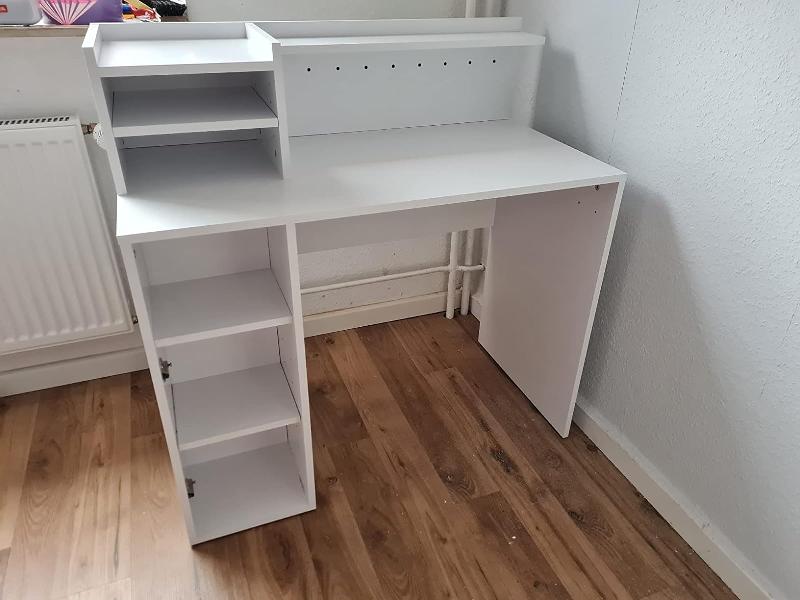 » an sich ein sehr schöner schreibtisch. Der Aufbau ist recht umfangreich und nimmt einige zeit in Anspruch. die schublade ließ sich leider nicht montieren da beim reinschieben die kugeln aus der schiene geschoben wurden.