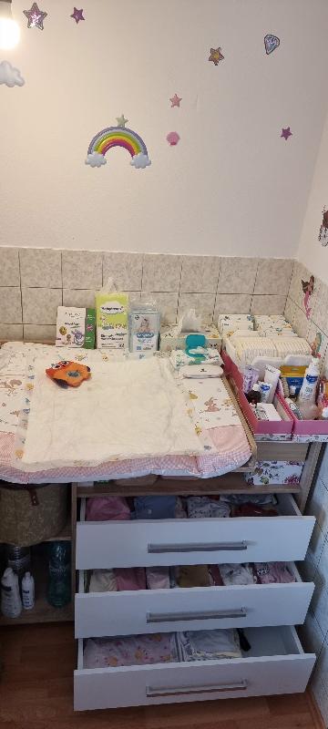 » Ich bin mega zufrieden damit. Es hat viel Stauraum und mein Baby liebt es auf dem tisch gewickelt zu werden. Der Aufbau der Kommode war sehr einfach da die Teile nummeriert waren. Gerne wieder :)