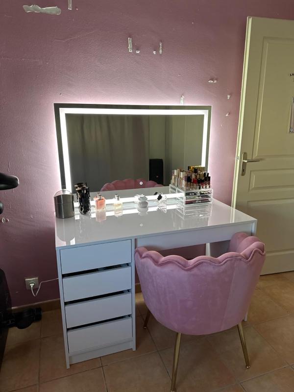 » Très belle coiffeuse,seul point négatif c’est pour le montage ce n’est pas très bien expliqué pour quelqu’un qui ne sait pas monter un meuble. Sinon parfait,elle est très belle et on voit qu’elle est de qualité. J’adore!!!!