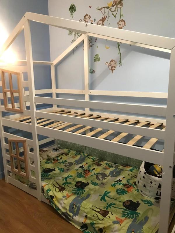 - Plongez dans un design moderne avec fenêtre et découvrez un lit superposé pratique pour la chambre denfant. Un lit superposé avec échelle et sommier à lattes inclus.